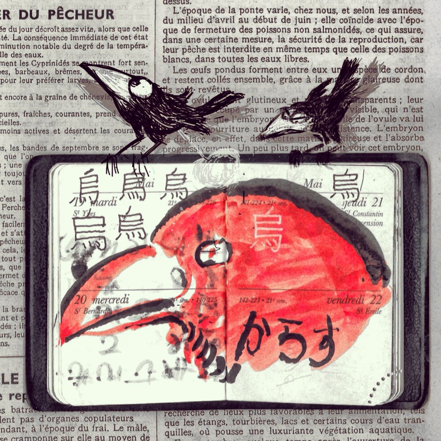 Aujourd'hui : Le corbeau 「からす」烏。 Le vrais, pas la corneille. Un jour si j'ai le temps, je mettrais un son. J'aime bien les corbeaux.